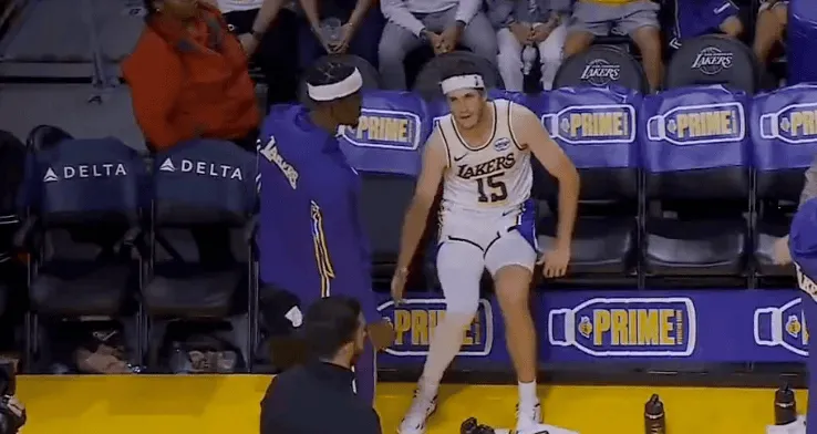 本場比賽第三節(jié),湖人后衛(wèi)奧斯汀-里夫斯遭遇腿部傷勢離場。