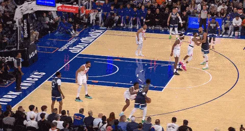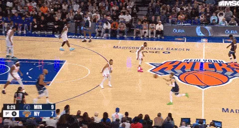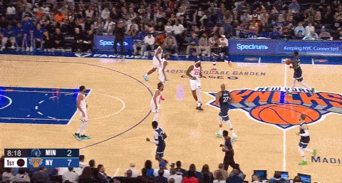 蘭德爾和杰登的fake DHO轉為直接突破,造成了弱側布倫森1對2的處境,直接傳給45度的迪文琴佐,形成了不錯的出手機會。