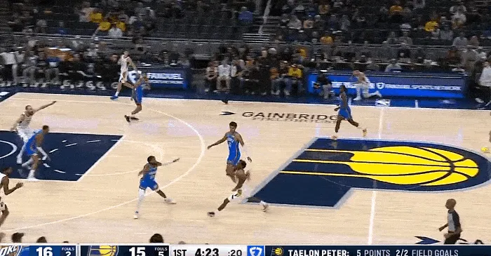 NBA季前賽,步行者對(duì)陣?yán)做耐衅?strong>比賽正在進(jìn)行中。