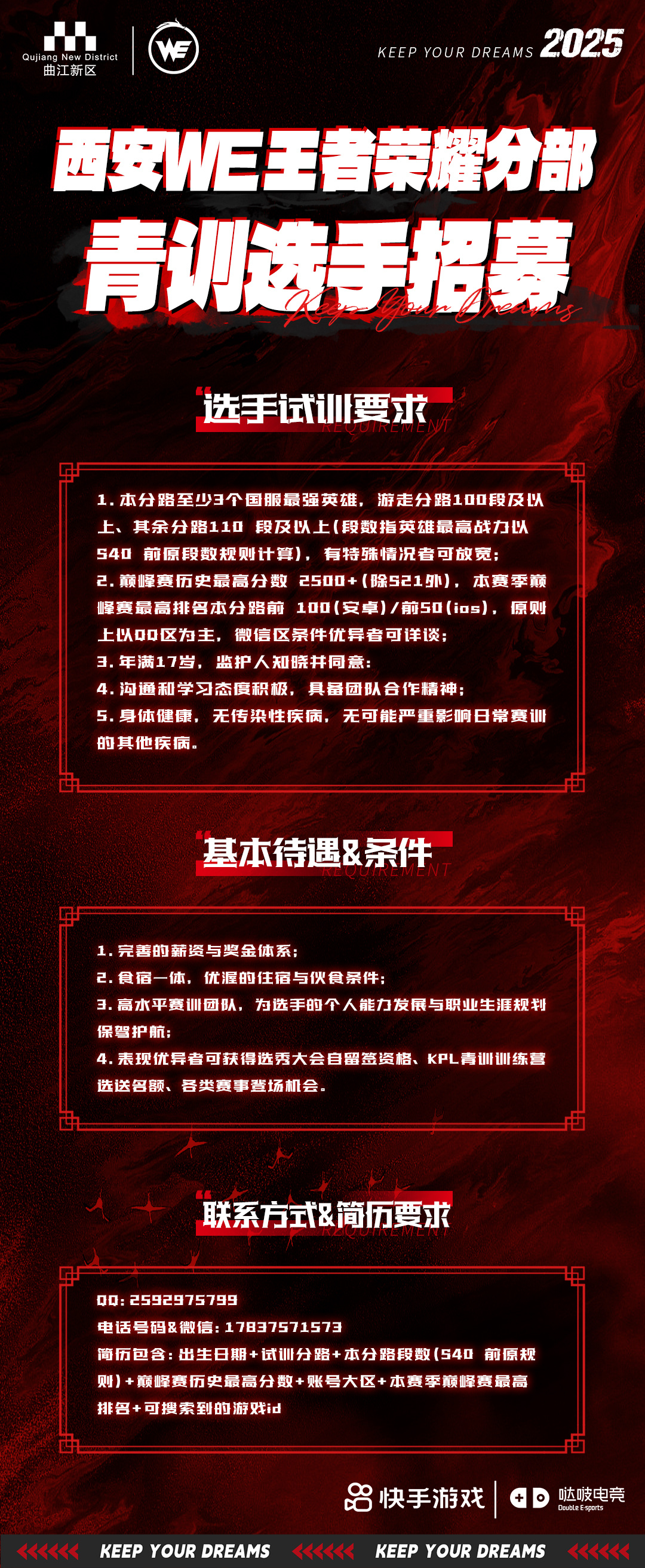虎撲10月16日訊 西安WE招募青訓(xùn):安卓前一百、iOS前五十,前Q區(qū)Q區(qū)為主,板西百年滿17