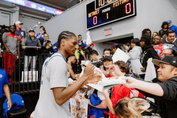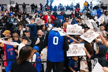 虎撲10月13日訊 活塞更新官方社媒,曬出了球員與球迷互動(dòng)的塞官照片。