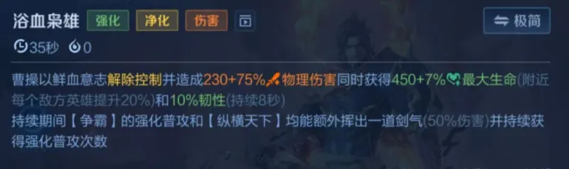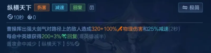 畢竟曹操技能+普攻的間隔都非常短,完全覆蓋黃盾的內(nèi)置CD,再加上他還有高韌性+解控,可以一直回血一直爽,真正做到不死不回家。