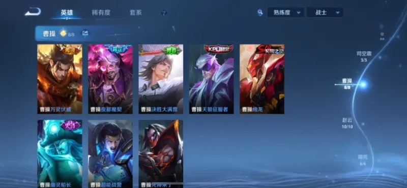 其實,曹操的全皮膚我都有,每款皮膚也用過不少次了,以下則是我心目中的性價比排行。