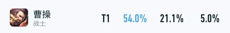 而在巔峰賽里,曹操擁有54%勝率依就算了,出場率更是突破至21.1%,優(yōu)先級對比他“變異”之前足足漲了18%,屬實離譜。