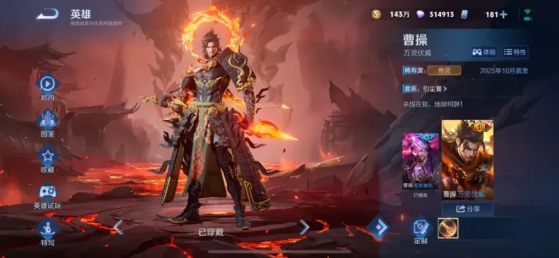在遇到廉頗+小喬+蘇烈+項羽+劉禪+趙云這些英雄時,如果曹操使用萬靈伏威的話,勝率可能會降低很多,最好換成別的皮膚。