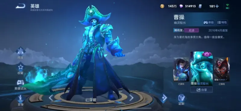 幽靈船長則是曹操“最出圈”的皮膚,雖然創(chuàng)造了非常多的名場面,但它的手感也是比較不錯的,獨一無二的浪花拍打音效,可以讓玩家體驗到更強烈的重力感。
