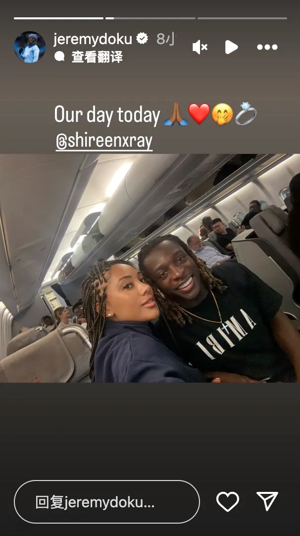 虎撲10月14日訊 曼城邊鋒多庫更新了Instagram,發(fā)布了他與未婚妻在飛機上的婚妻合影:今天是屬于我們的一天????