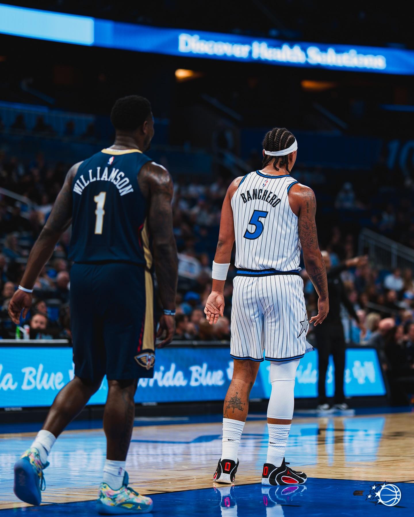 昨日魔術(shù)以132-125擊敗了鵜鶘。合影