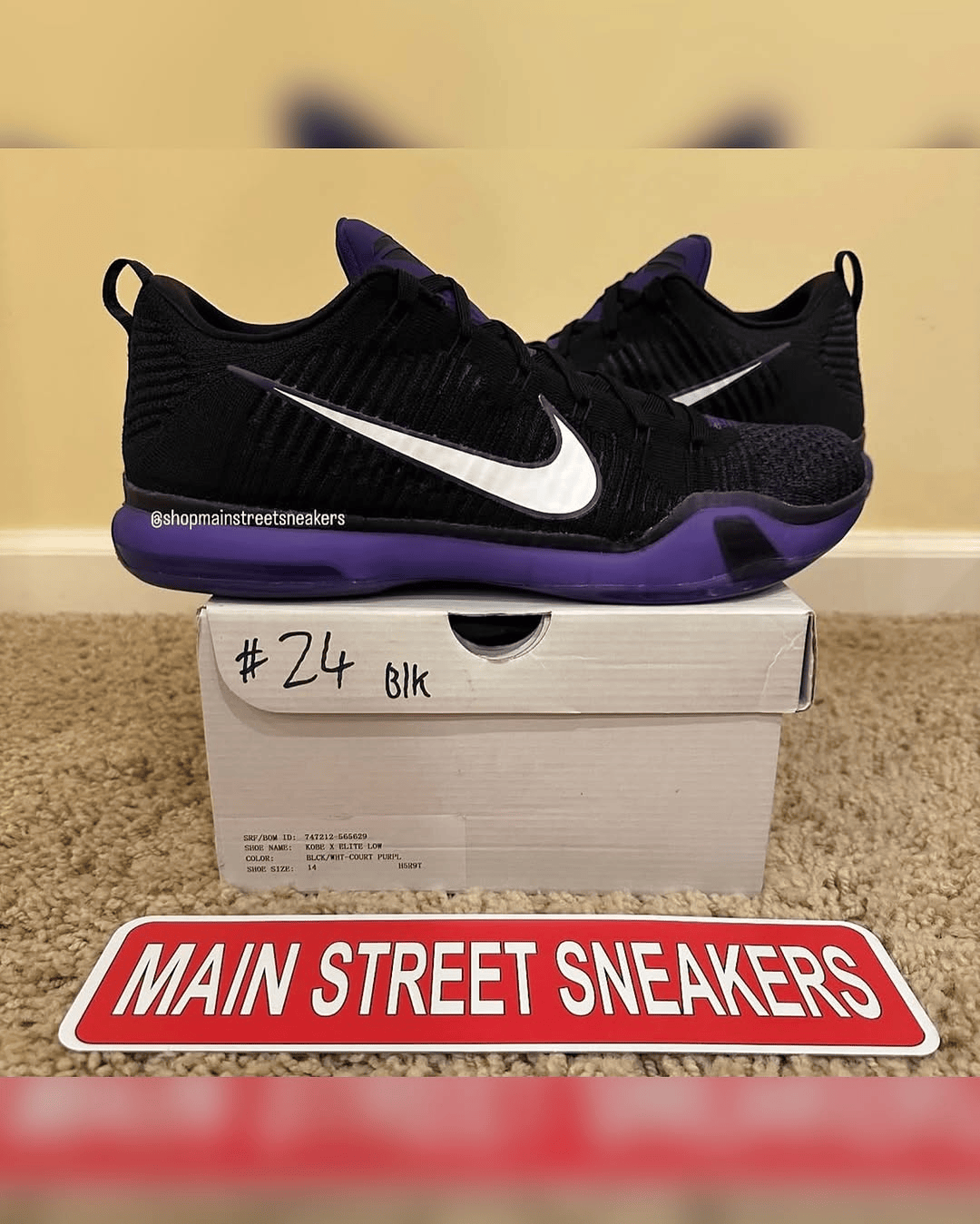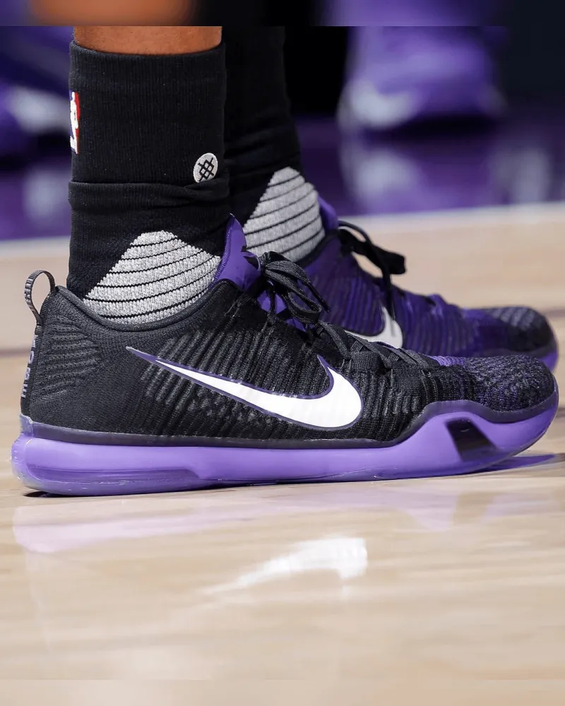 虎撲10月14日訊 海外科比球鞋社媒「Mamba Kix」展示一雙科比-布萊恩特曾在比賽中親穿的落場(chǎng)版黑紫色Nike Kobe 10 Elite Low戰(zhàn)靴。