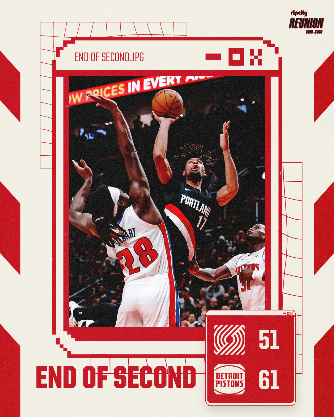 虎撲12月23日訊 NBA常規(guī)賽,開(kāi)拓者對(duì)陣活塞的板夏半場(chǎng)比賽正在進(jìn)行中。