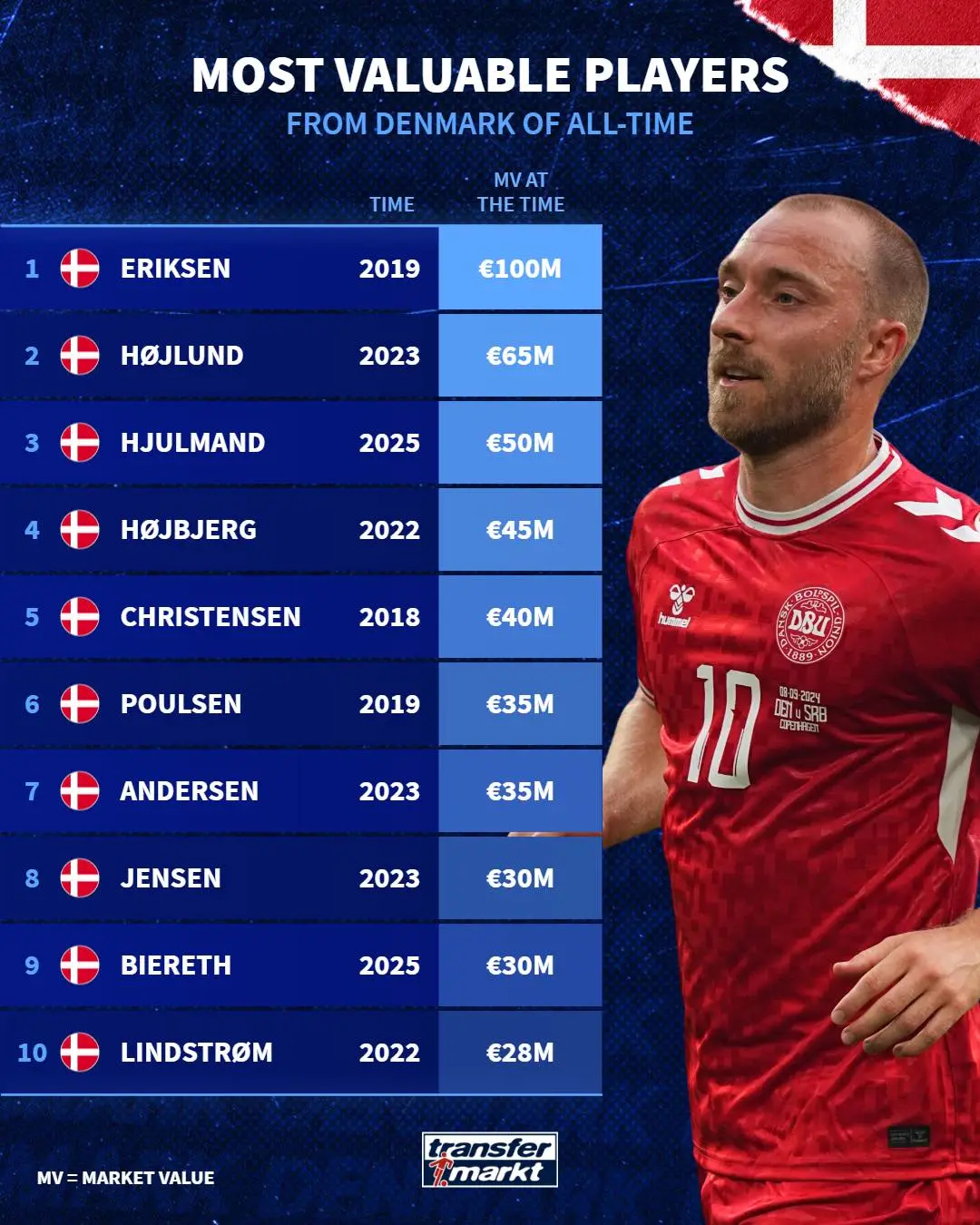 丹麥歷史身價(jià)榜(均為歐元):