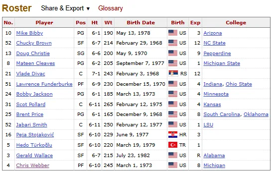 21世紀(jì)初的那支與冠軍湖人血戰(zhàn)7場(chǎng)的國(guó)王隊(duì),好幾名主力球員都給退役了球衣。