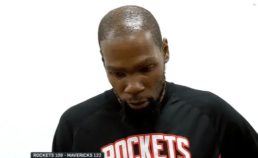 本場比賽,火箭球員凱文-杜蘭特出戰(zhàn)31分鐘,20投11中,其中三分球3投1中,罰球4投4中,得到27分1籃板3助攻。