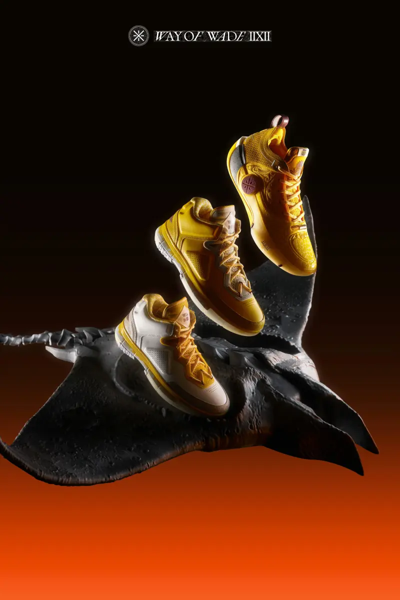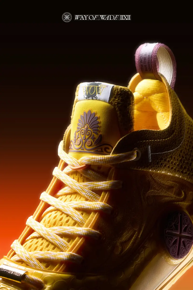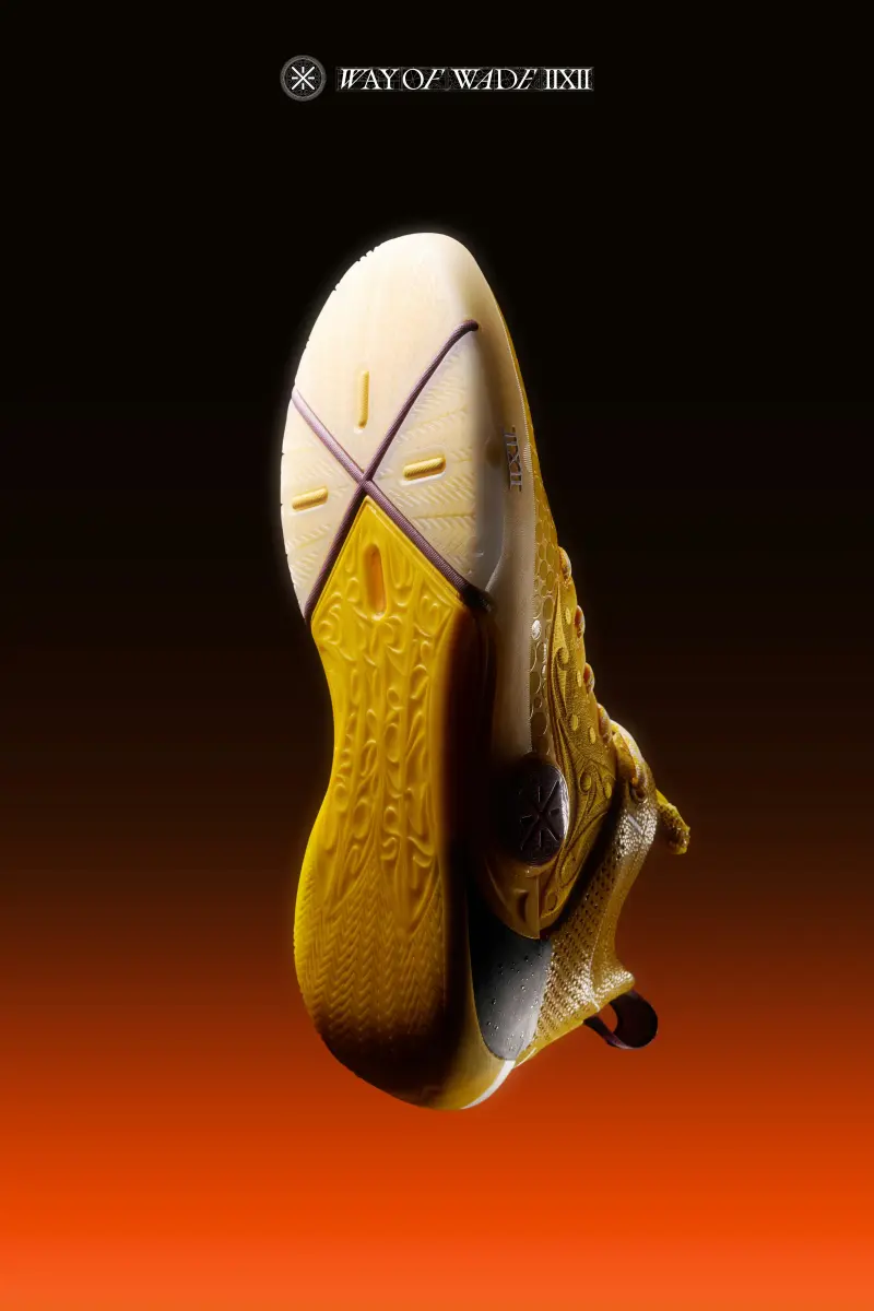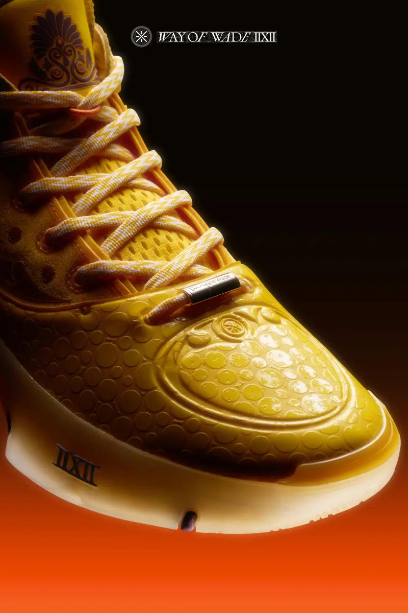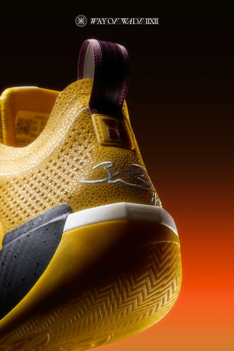本次韋德之道12魔鬼魚鞋身采用明黃色呈現(xiàn),板經(jīng)鞋面同樣延續(xù)了經(jīng)典的典配“氣泡”狀潑墨斑點(diǎn)。