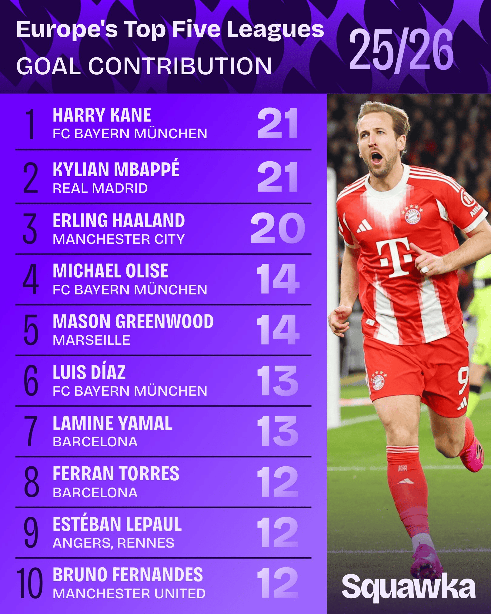 虎撲12月16日訊 在又一輪五大聯(lián)賽結(jié)束后,數(shù)據(jù)網(wǎng)站squawka更新五大聯(lián)賽本賽季的姆巴參與進(jìn)球榜。