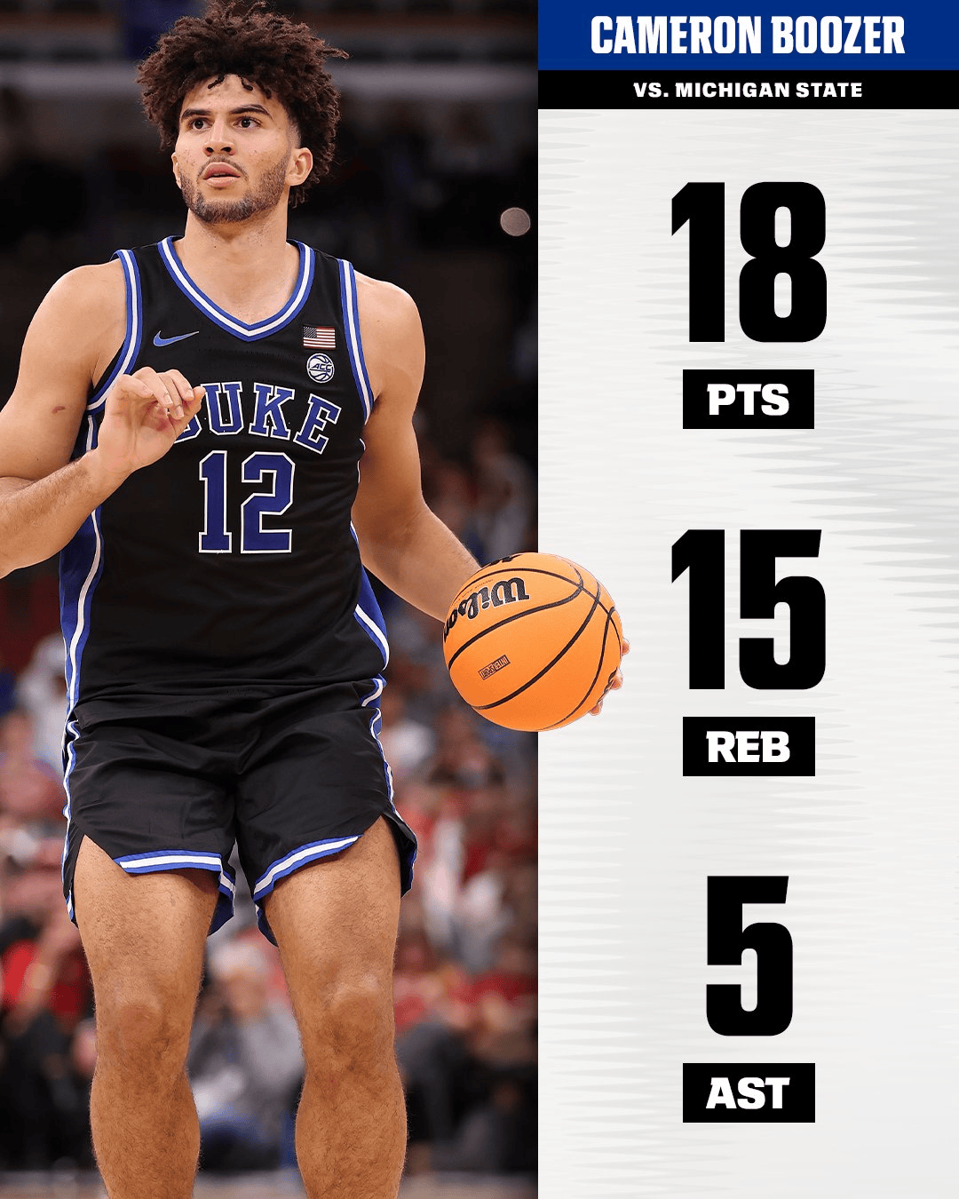 此役,明年選秀的狀元熱門(mén)人選卡梅倫-布澤爾出戰(zhàn)34分鐘,全場(chǎng)13中7,三分3中1,罰球4中3,得到18分15籃板5助攻2搶斷1蓋帽。